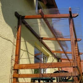 Płyty profilowane z PET oraz rulony z poliestru wzmocnionego włóknem szklanym - przekrycia werand, osłony ścienne do cieplarni, zadaszenia garaży, pergoli, pawilonów, obudowa balkonów, elementy ogrodzeń