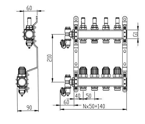 Umożliwiają one instalatorowi szybką regulację przepływu oraz bieżącą kontrolę pracy poszczególnych sekcji, co jest kluczowe dla efektywności energetycznej całego systemu. Z kolei na belce powrotnej umieszczono zawory termostatyczne, które oferują dużą elastyczność w zarządzaniu temperaturą.