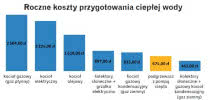 Obok zaprezentowano porównanie rocznych kosztów podgrzania 300 l wody przy wykorzystaniu różnych źródeł ciepła.