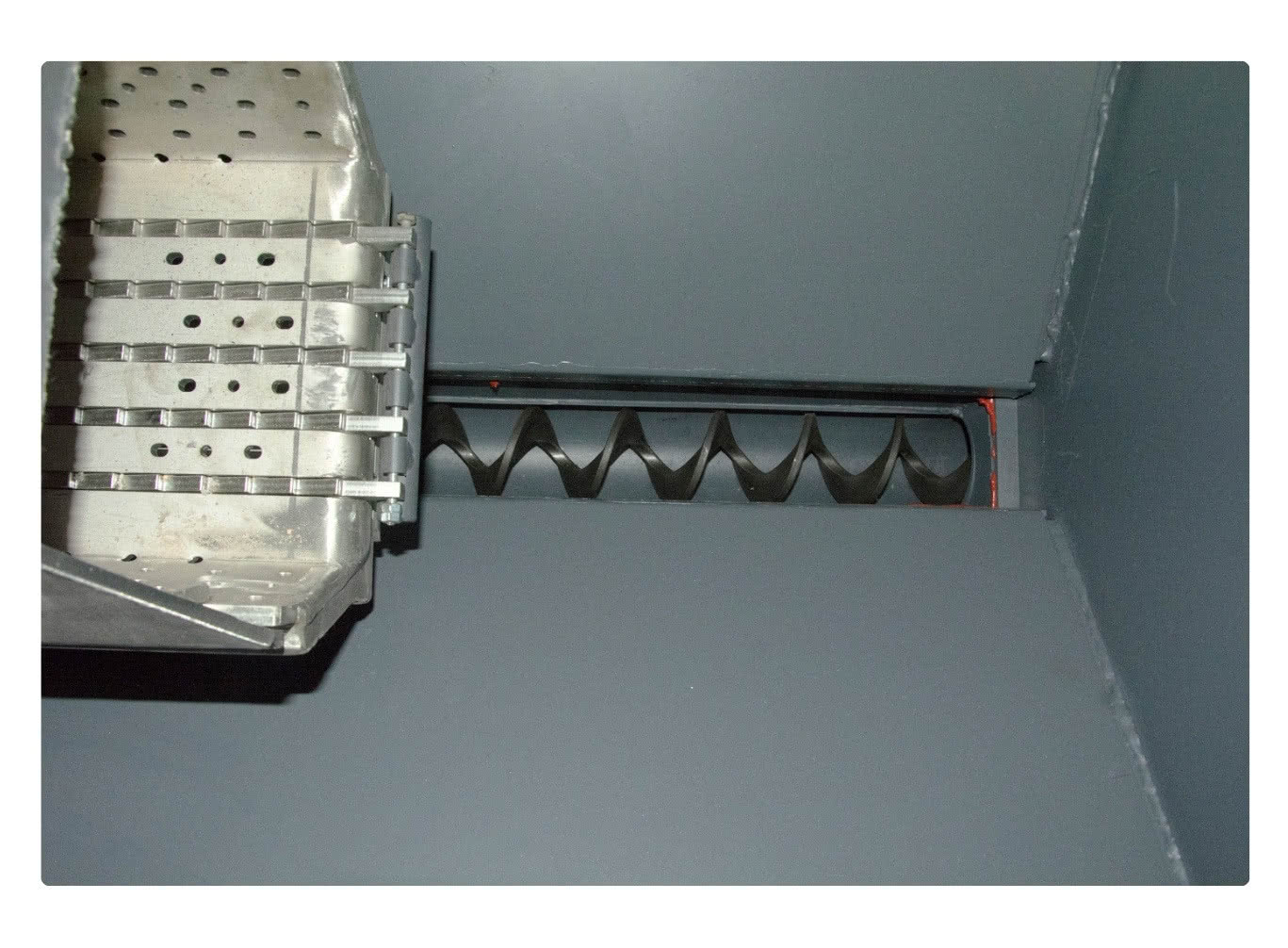 Następnie zebrane resztki wpadają w dół do tak zwanego leja zsypowego. Stąd trafiają bezpośrednio do stalowej rury, wewnątrz której znajduje się metalowa spirala. Ta spirala wolno się obraca dzięki niewielkiemu silnikowi i po prostu wypycha zebrany popiół na zewnątrz pieca, kierując go prosto do przygotowanego pojemnika.