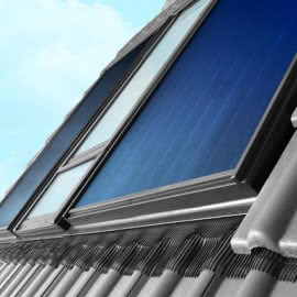 System solarny FAKRO to innowacyjne rozwiązanie zespalanych z połacią dachu kolektorów słonecznych oraz pozostałych elementów instalacji, które stanowi zintegrowany zestaw pozyskiwania energii ze słońca.