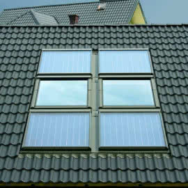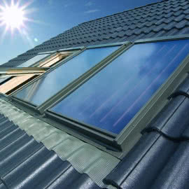 Dodatkowo jeżeli projekt uwzględnia montaż okien dachowych to system kołnierzy dachowych FAKRO w prosty sposób umożliwia ich zespolenie z kolektorami.