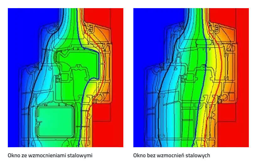 Skutkiem eliminacji wzmocnień stalowych jest likwidacja mostków termicznych, które w tradycyjnych konstrukcjach powstają w wyniku wysokiej przewodności cieplnej metalowego usztywnienia. Zastosowanie powerdur inside pozwala osiągnąć zdecydowaną poprawę właściwości cieplnych profili, co ma bezpośrednie przełożenie na współczynnik przenikania ciepła.