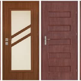 Materiał ościeżnic i skrzydeł: skrzydła drzwiowe oparte na klejonym ramiaku drewnianym; wypełnione stabilizatorem typu plaster miodu lub płytą wiórową (pełną lub otworową); całość obłożona obustronnie płytą HDF wykończoną, w zależności od linii wzorniczej, lakierem lub okleiną drewnopodobną; ościeżnice stałe wykonywane z płyty MDF lub drewna (wymiary elementu 100/43 mm), regulowane (dostosowane do szerokości muru od 75 mm) wyłącznie z płyty MDF
