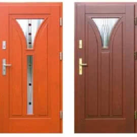 Konstrukcja: ościeżnica z drewna iglastego klejonego warstwowo; rama z drewna iglastego klejonego warstwowo wzmocniona sklejką wodoodporną; kasetony z wodoodpornej sklejki liściastej o grubości 13 mm, przedzielone ociepleniem od 33 do 59 mm w drzwiach zewnętrznych i do 30 mm w drzwiach wejściowych o grubości skrzydła 43 mm