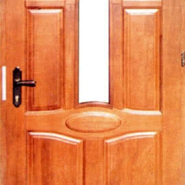 Wyposażenie standardowe: ościeżnica, zamek, klamka, zawiasy regulowane, próg z drewna twardego, uszczelka na całym obwodzie ościeżnicy (w wersji z szyba zespoloną)