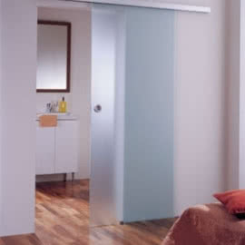 drzwi przesuwne naścienne bez ościeżnicy - skład kompletu: skrzydło drzwiowe, szyna do drzwi przesuwnych, prowadnica punktowa, maskownica fornirowana lub lakierowana lakierem kryjącym (bez struktury drewna); standardowe wymiary otworów: 800/2020 mm oraz 900/2020 mm