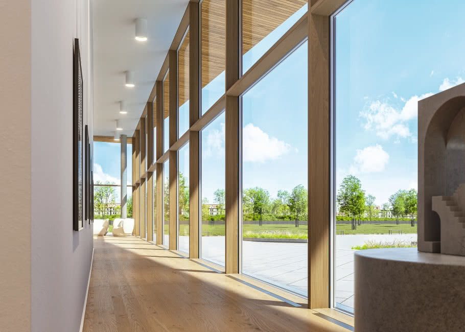 Ciekawym rozwiązaniem jest także zaprojektowane pod kątem jak najefektywniejszego zużycia materiałów okno Schüco FocusIng, które łączy niewielką głębokość zabudowy ościeżnicy i skrzydła 70/76 mm z modnym, minimalistycznym wyglądem i doskonałymi właściwościami termoizolacyjnymi czy hybrydowe rozwiązania łączące drewno i aluminium, jak np. konstrukcja nakładkowa Schüco AOC 75 TI. W ten sposób marka Schüco już dziś ma w swoim portfolio kompleksowe rozwiązania pozwalające spełnić unijne wymogi obniżania śladu węglowego w budynkach.