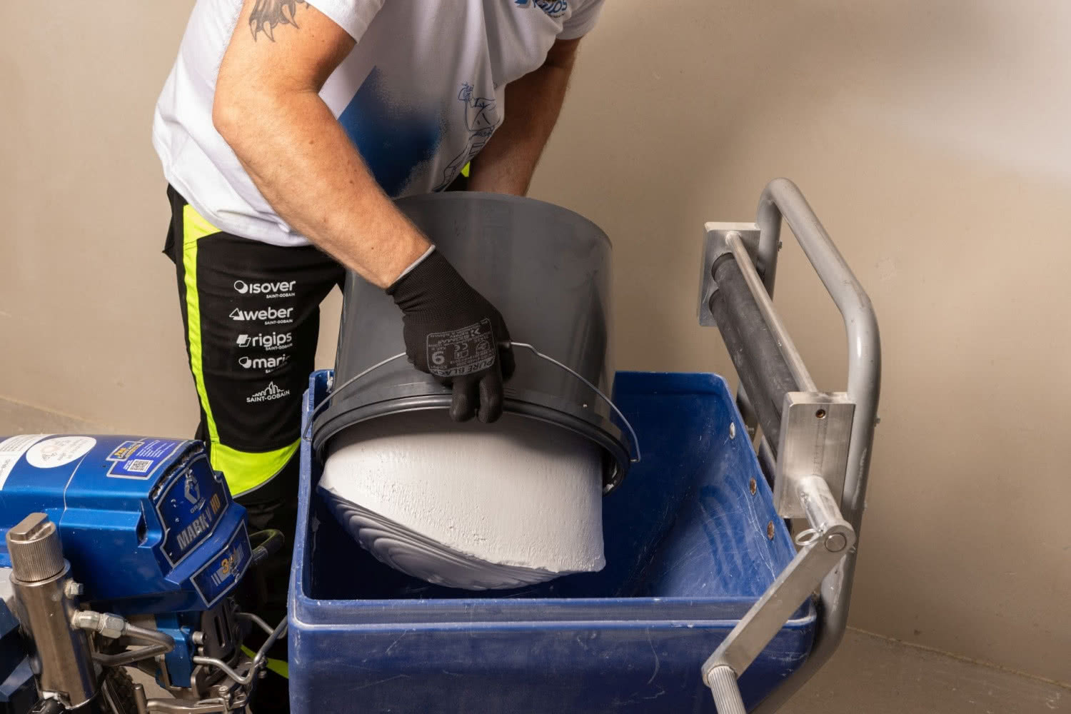 Masę można nanosić agregatem hydrodynamicznym, ale też wałkiem lub pacą, a dzięki beżowej barwie pozwala ona na używanie jaśniejszych zaprawek i wyróżnienie pomalowanych już miejsc. Także w przypadku tego produktu marka Rigips zastosowała technologię „plopp efekt”, która umożliwia szybkie i proste opróżnienie wiadra minimalizując straty materiału.