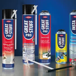 - GREAT STUFF TM - jednoskładnikowa pianka poliuretanowa utwardzana pod wpływem wilgoci, do wypełniania i izolacji szczelin, pęknięć oraz montażu stolarki otworowej i drzwiowej; odporna na temp. od -40 do +100°C