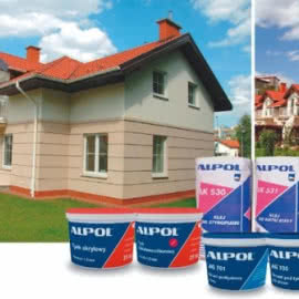 farby elewacyjne: akrylowe ALPOL AF 640, silikatowe ALPOL AF 660, silikonowe ALPOL AF 680; zużycie: 0,25-0,33 l/m2.
