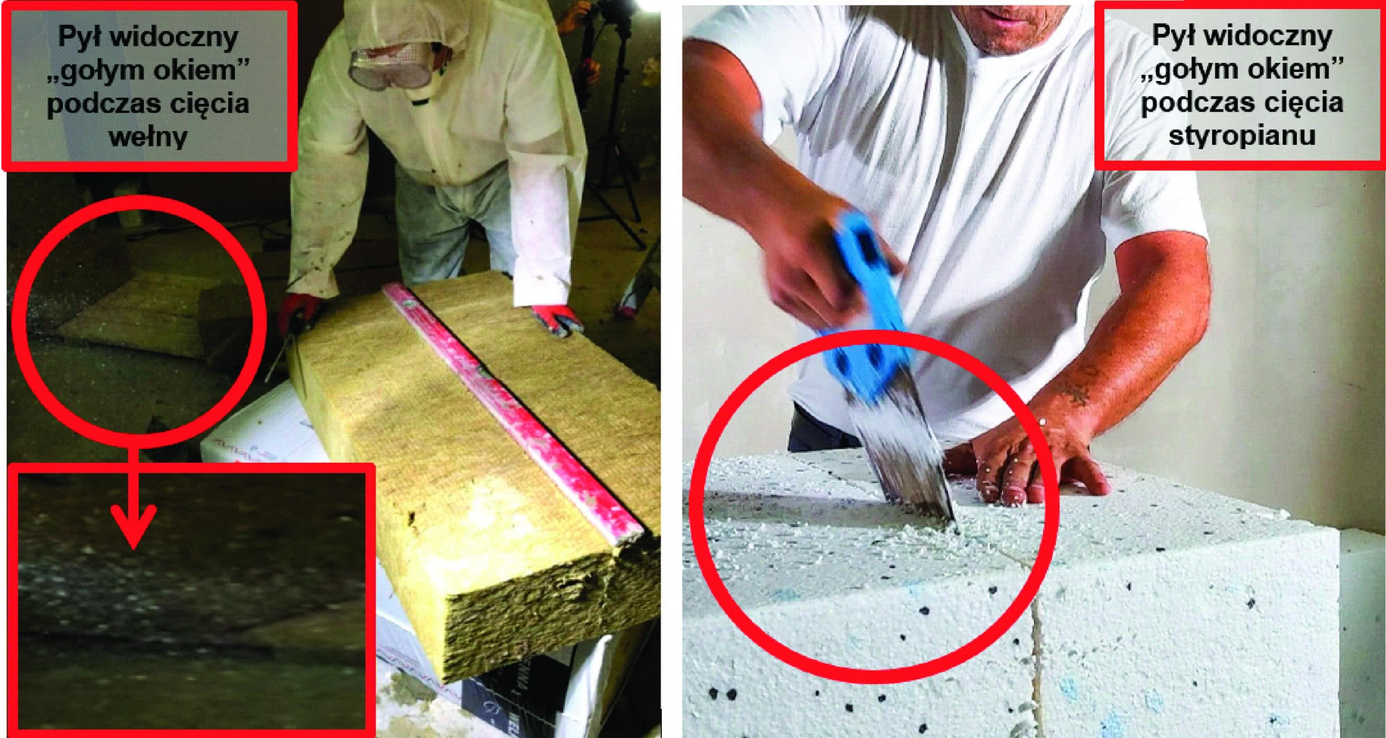 W prezentowanych badaniach, podczas aplikacji i zacierania wełny, odnotowano przekroczenie najwyższych dopuszczalnych stężeń pyłów na stanowisku pracy wynoszące 10 mg/m³. Podczas szlifowania wełny stężenie to było przekroczone dwukrotnie. (źródło: Zgodnie z Rozporządzeniem Ministra Rodziny, Pracy i Polityki Społecznej z 12 czerwca 2018 r. w sprawie najwyższych dopuszczalnych stężeń i natężeń czynników szkodliwych dla zdrowia w środowisku pracy (Dz.U.2018 poz. 1286) wraz ze zmianami (Dz.U. 2020 poz. 61) oraz dr hab. inż. Michał Piasecki, prof. ITB - Materiały Budowane nr 7/16 Zanieczyszczenie powietrza pyłem podczas etapów montażu wybranych wyrobów izolacji cieplnej – badanie laboratoryjne)
