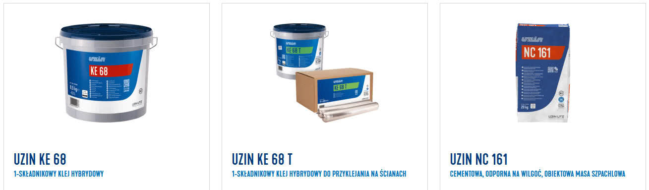 Do montażu na podłodze poleca się jednoskładnikowy klej hybrydowy UZIN KE 68. Produkt ten jest przeznaczony do powierzchni mocno obciążonych i bardzo dobrze współpracuje z systemami ogrzewania podłogowego. Zatrzymuje on panele w miejscu, zapobiegając ich przesuwaniu się na skutek zmian ciepła.
