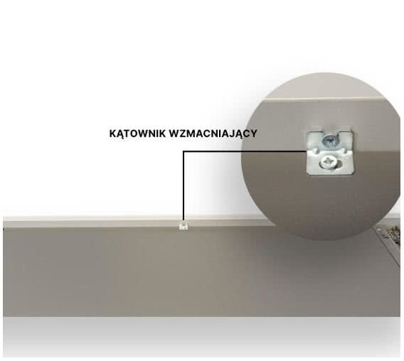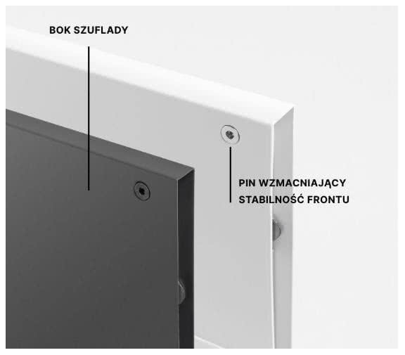 Drugim istotnym elementem usztywniającym jest specjalistyczny kątownik podtrzymujący dno, dedykowany szufladom o ponadstandardowej szerokości. Tego typu moduły wykazują silną tendencję do odkształceń materiałowych pod wpływem ciężaru przechowywanego asortymentu.