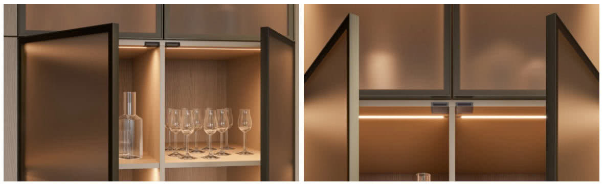 Taki scenariusz poprawia wygodę korzystania z przechowywania, a jednocześnie ogranicza niepotrzebne świecenie, bo światło działa tylko w czasie użytkowania mebla.