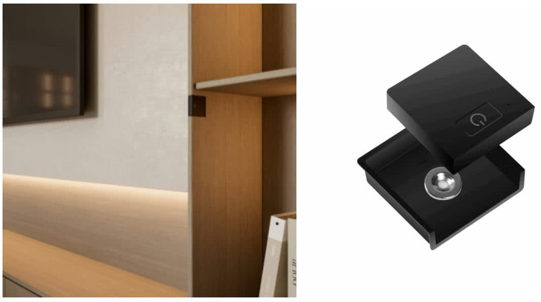 Z punktu widzenia wykonawcy to istotne ułatwienie: system nie wymaga skomplikowanych prac instalacyjnych, a konfiguracja po montażu jest szybka. W praktyce można dowolnie zestawiać włączniki z oprawami i taśmami LED, dopasowując sposób działania do konkretnego mebla i oczekiwań użytkownika.