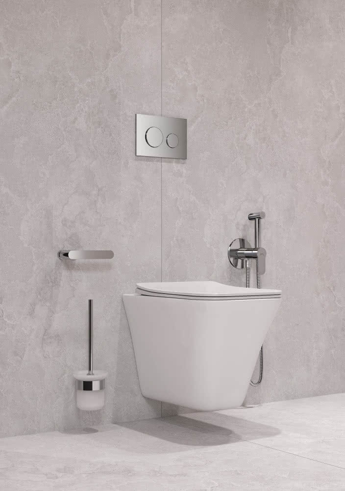 Bateria bidetowa NOSTRIS w wersji podtynkowej pozwala ukryć mechanizm sterujący w ścianie, dzięki czemu na zewnątrz pozostaje tylko to, co potrzebne. Taki zabieg ma dwa praktyczne skutki: ułatwia utrzymanie czystości, bo mniej elementów zbiera kurz i osad, oraz poprawia odbiór estetyczny.