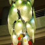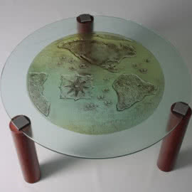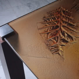 Aby nasze fusowane drzwi szklane idealnie współgrały z wnętrzem, wprowadziliśmy nowoczesne stoły szklane i szklane stoliki (fusowane blaty szklane). Zresztą architektura wnętrz jest dziedziną, gdzie jedynymi granicami są granice wyobraźni: robiliśmy już ściany ze szkła, fontanny, szklane podłogi, szklane balustrady i szklane wypełnienia balustrad, szklane schody, kinkiety i lampy, a nawet ponad 10-metrowy żyrandol. W swym dorobku mamy również obiekty sakralne: nowoczesne witraże ze szkła fusingowego, chrzcielnice, wizerunki świętych, ogromny szklany krzyż na ołtarz oraz elementy dekoracyjne do kościołów, głównie ołtarzy i ambon.