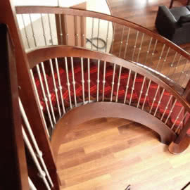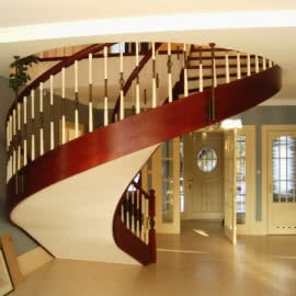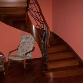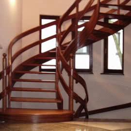 Rodzaje schodów i balustrad z drewna: gięte, zabiegowe, spiralne zgiętymi elementami drewnianymi; na rzucie koła, kwadratu, prostokąta