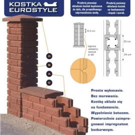 Ogrodzenia trwałe, solidne i proste w wykonaniu, nie wymagają murowania ani fugowania. Kostka układana jest na fundamencie i wypełniana betonem.