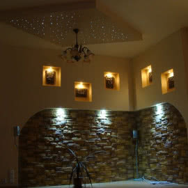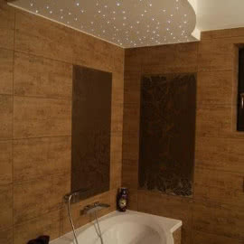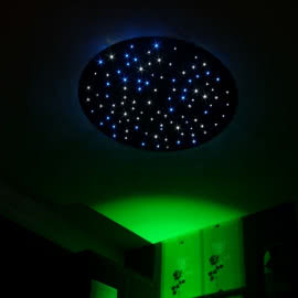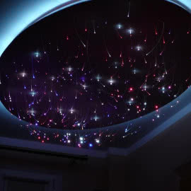 Oświetlenie światłowodowe można montować w płycie kartonowo-gipsowej (suchy tynk), sklejce, płycie z plexi, płycie meblowej, lustrze lub w dowolnym innym materiale. "Gwiaździste niebo" składa się z wiązki światłowodów, źródła światła i zasilacza. Całość zestawu jest ukryta za płytą a wystające końcówki światłowodów tworzą efekt gwiazd na niebie. W ofercie mamy również zestawy łącznie z płytą plexi. Zestawy te nie wymagają sufitu podwieszanego a ich montaż na tradycyjnym suficie zajmuje około 15 minut.